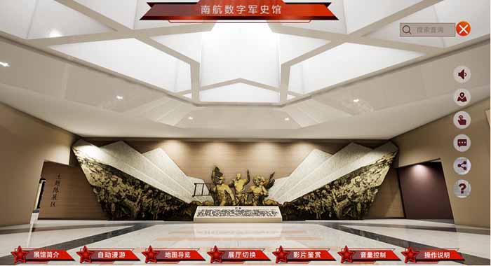 瀏覽者可通過導(dǎo)航講解、史料搜索、智能問答、場景還原、歷史穿越等功能在數(shù)字史館中自由參觀,同時可借助VR眼鏡、VR手柄、萬向跑步機、座椅座艙等設(shè)備,實現(xiàn)“沉浸式”體驗,讓瀏覽者穿越歷史時空,身臨其境感受南航發(fā)展歷程、輝煌業(yè)績和紅色文化。