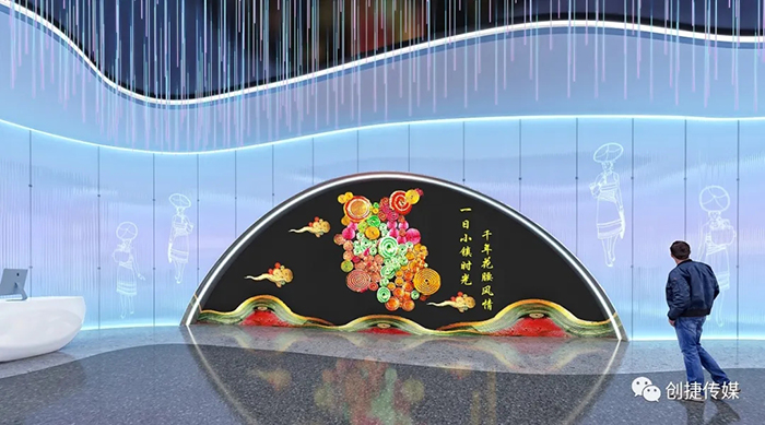 空間設計中,設計團隊深入挖掘戛灑民族文化和規(guī)劃特點,“互聯網+”展陳模式使展館與外界互聯互通,打破傳統展陳壁壘。塑造獨具特色的視覺符號,以大展項浸潤文旅特色,使觀眾留下難以磨滅的觀展節(jié)點。