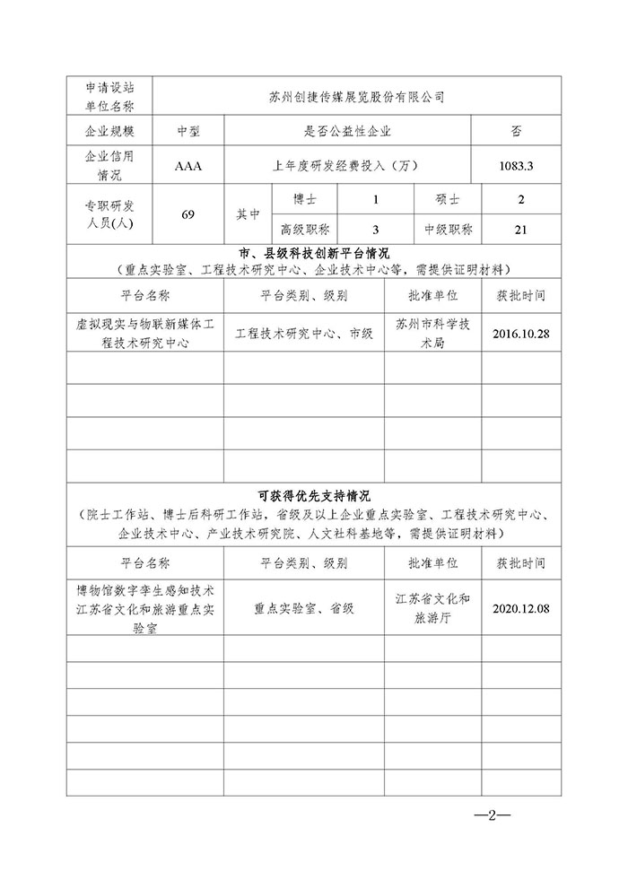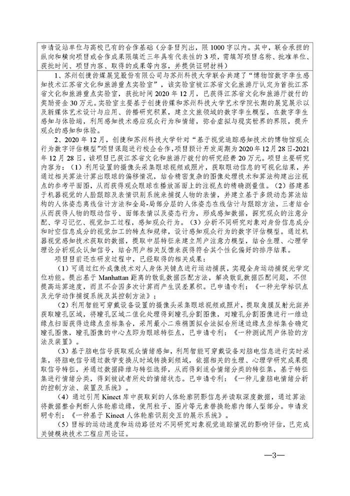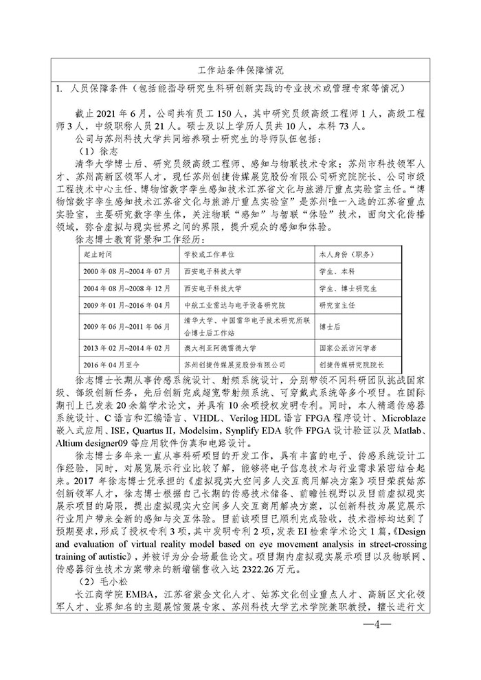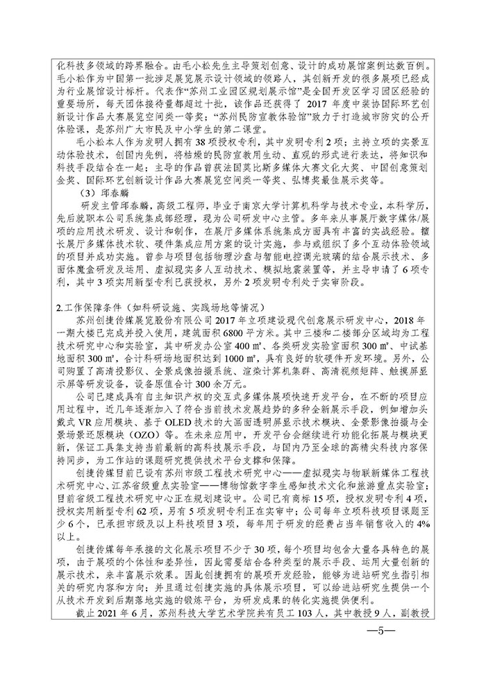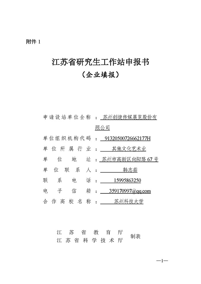 根據(jù)江蘇省教育廳辦公室、江蘇省科學(xué)技術(shù)廳辦公室《關(guān)于做好2021年江蘇省研究生工作站和江蘇省優(yōu)秀研究生工作站示范基地申報(bào)的通知》(蘇教辦研函〔2021〕4號(hào))、《江蘇省研究生工作站管理辦法》(蘇教研〔2019〕3號(hào))文件精神,為促進(jìn)科技協(xié)同創(chuàng)新與成果轉(zhuǎn)化,助力公司高質(zhì)量發(fā)展,公司擬與蘇州科技大學(xué)藝術(shù)學(xué)院開展校企合作,共建江蘇省研究生工作站,現(xiàn)予公示,具體內(nèi)容見附件:《江蘇省研究生工作站申報(bào)書》。