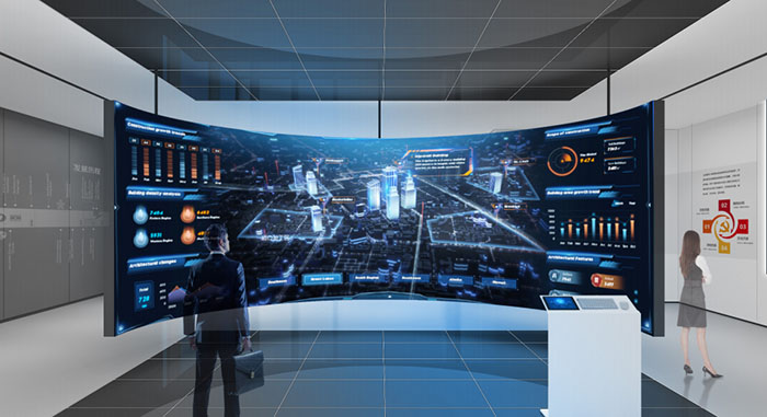 設計團隊以現(xiàn)代感、品質感、開放感、科技感“四感原則”為空間設計理念,營造簡潔大氣的美學空間。從企業(yè)理念和LOGO中提取視覺元素,打造獨具特色的展廳氛圍,定制專屬多媒體展項,形成美學與科技融合,靈動且多元的造型空間。